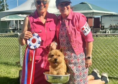 Ollie ended as Number 1 Norwich and #16 All Terrier. Our new young girl – and new Champion Amblegreen Sidney By the Sea (bred by Dottie Prohaska) ended 2023 as #1 Norwich puppy … with 6 Puppy Group placements and a Best Puppy in Show so far! Sidney also got to the Yuma KC shows and went Best of Breed and an OH Group 4, plus Winners 3 of the 4 days…